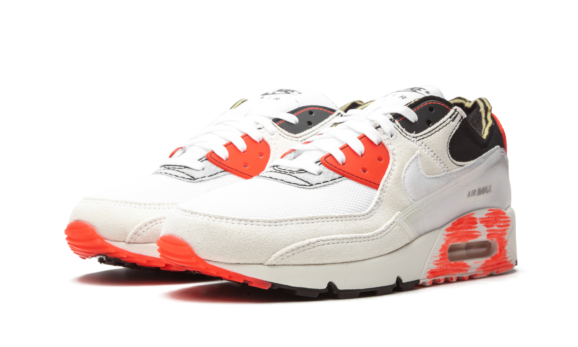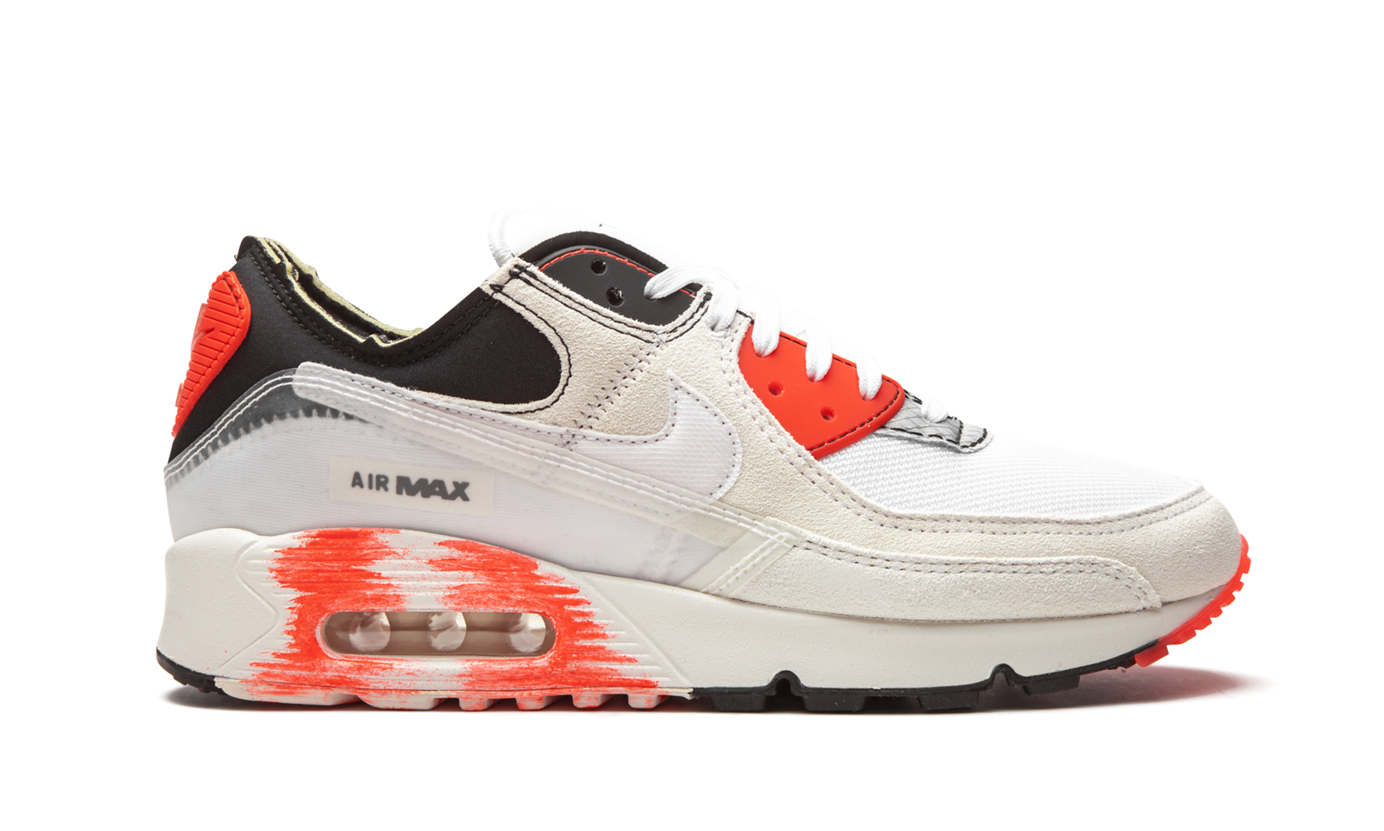 The Nike Air Max 90 “Archetype” is based on an early sketch by the model’s designer, Tinker Hatfield. With an intentionally “unfinished” look, the “Archetype” is one of the more progressive Air Max 90s on the market today. Examples of the model’s “raw” aesthetic can be found on the exposed foam padding around the ankle collar, exposed white stitching above the stripped-down mudguard, and grey nylon eyelet overlay on the toe. Durable white mesh can be found on the toe. Overlaid grey suede panels appear on the forefoot and mid-panel. A white embroidered Swoosh can be found on either side of the shoe and translucent “Nike Air” detailing is located on the Bright Crimson overlay on the heel. Additional fiery red accenting dots the middle eyelet and the overlay that surrounds the visible Air unit in the heel. Release date: December 10, 2020. Archetype - Bright Crimson