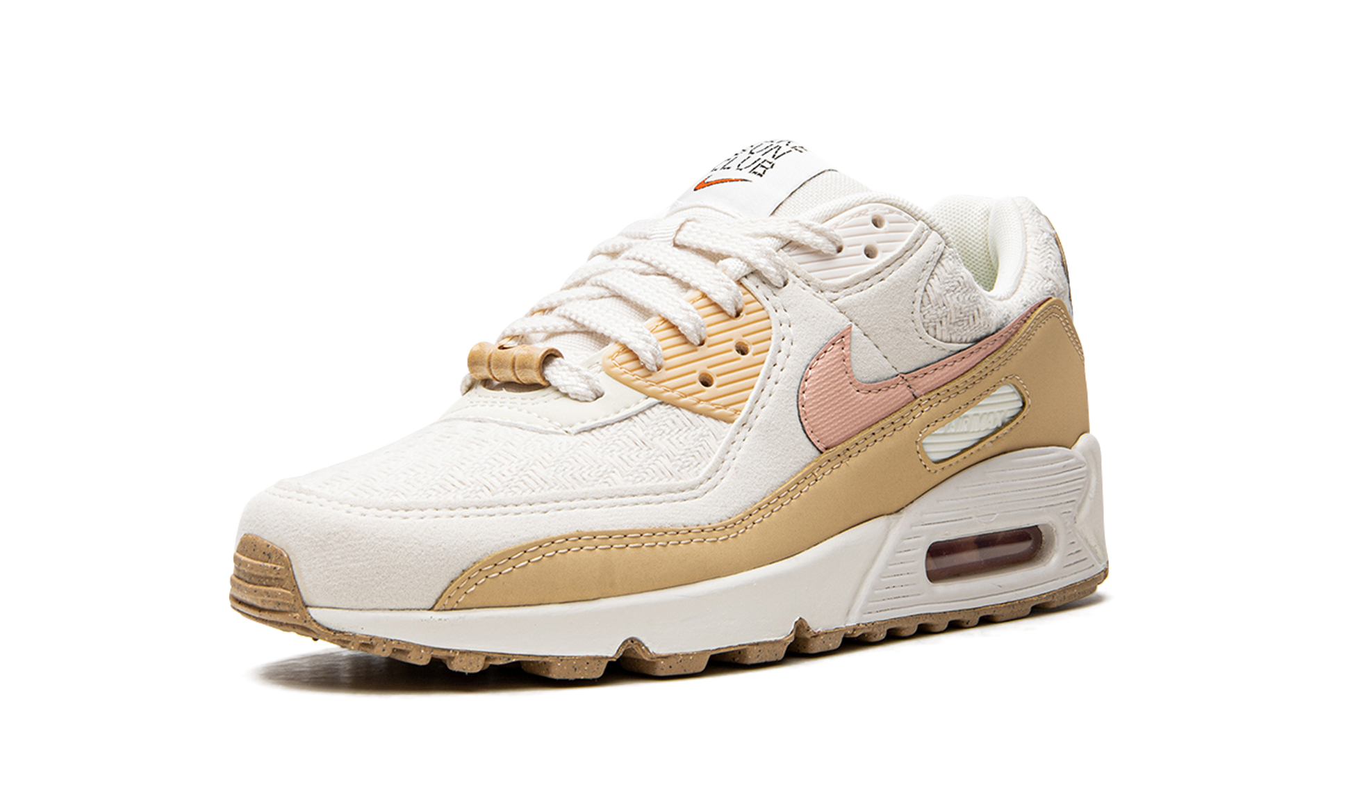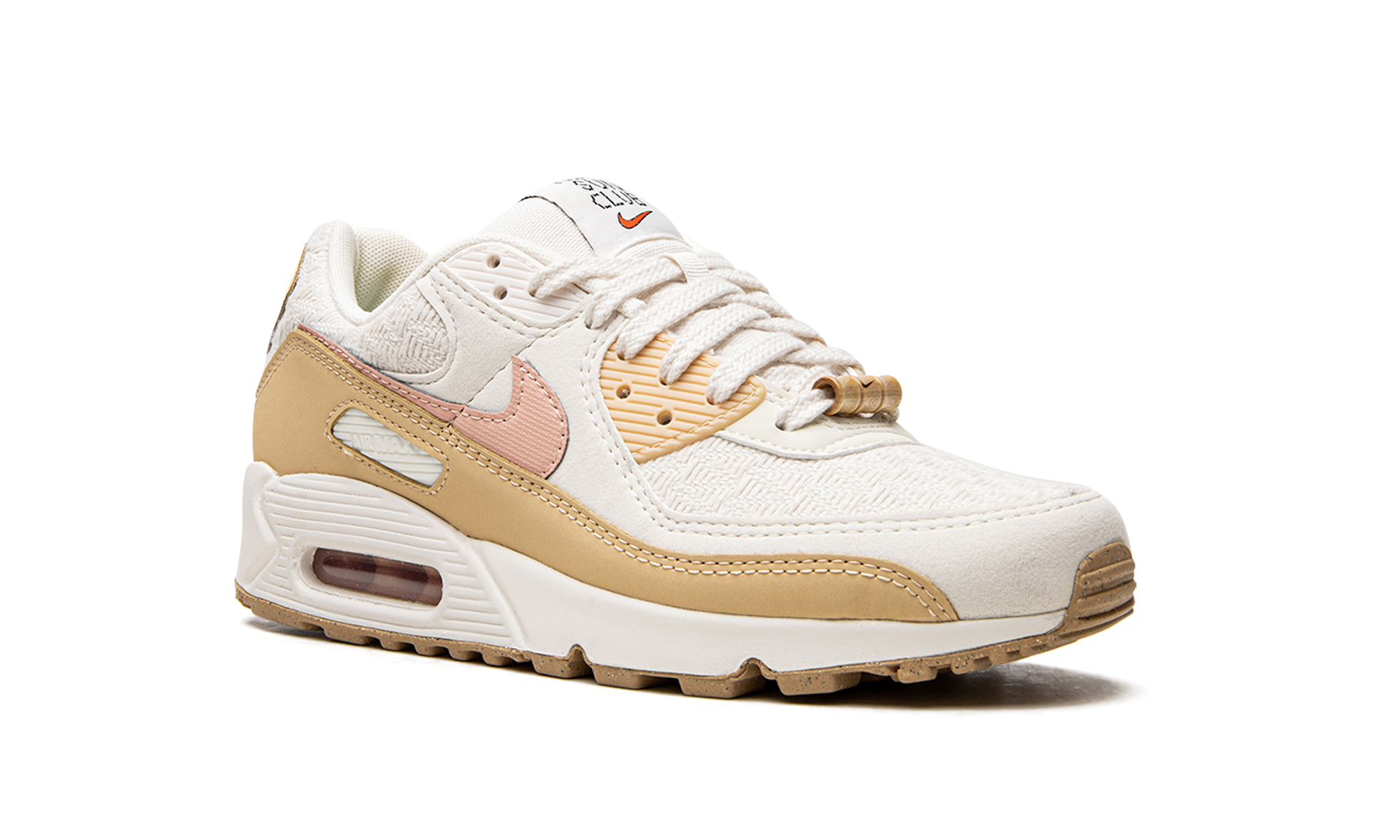 The Women’s Nike Air Max 90 “Sun Club” is a women’s release of the retro running shoe from the popular colorway collection. The “Sun Club” updates the Air Max 90’s timeless design with warm tones and graphics, as it features palm tree detailing on the inner tongue tag, bamboo lace dubraes, and Nike’s pinwheel graphic on the Grind outsole. The white textile base is complemented by tonal overlays and a pink Swoosh on either side. “Nike Air” branding is found on the tan heel overlay, and “Nike Sun Club” insignia appears on the tongue tag. The sneaker is complete with a Nike Grind outsole that’s made from recycled content. Release date: May 21, 2022 Sun Club