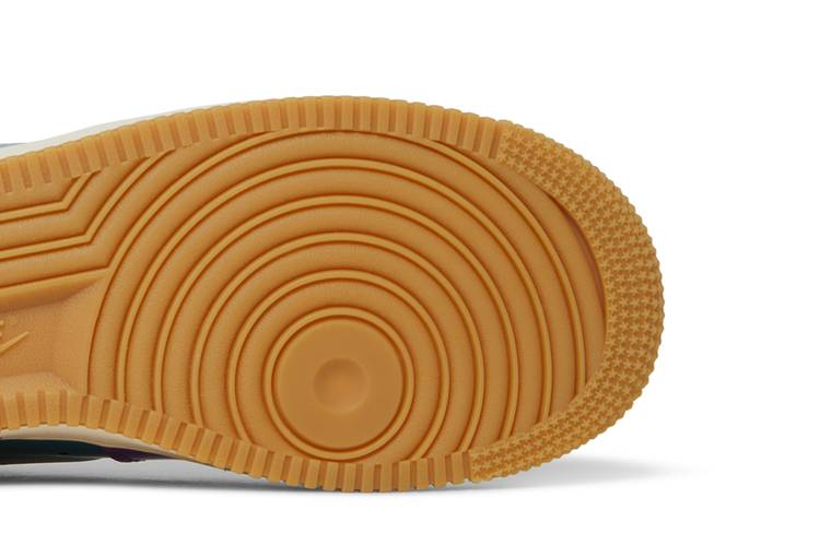 The Nike Air Force 1 Low SP Undefeated Multi-Patent Wild Berry features a multicolor patent leather upper with a translucent blue Swoosh accent. It also showcases olive green, purple, teal, and salmon hues. This collaboration with Undefeated includes UNDFTD lace dubrae, Five Strikes logo details, and custom branding. The shoe is grounded with a vintage off-white midsole, encapsulated Air-sole cushioning, and a gum rubber outsole for traction.