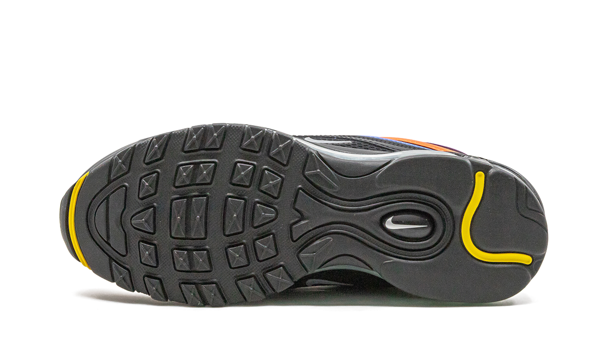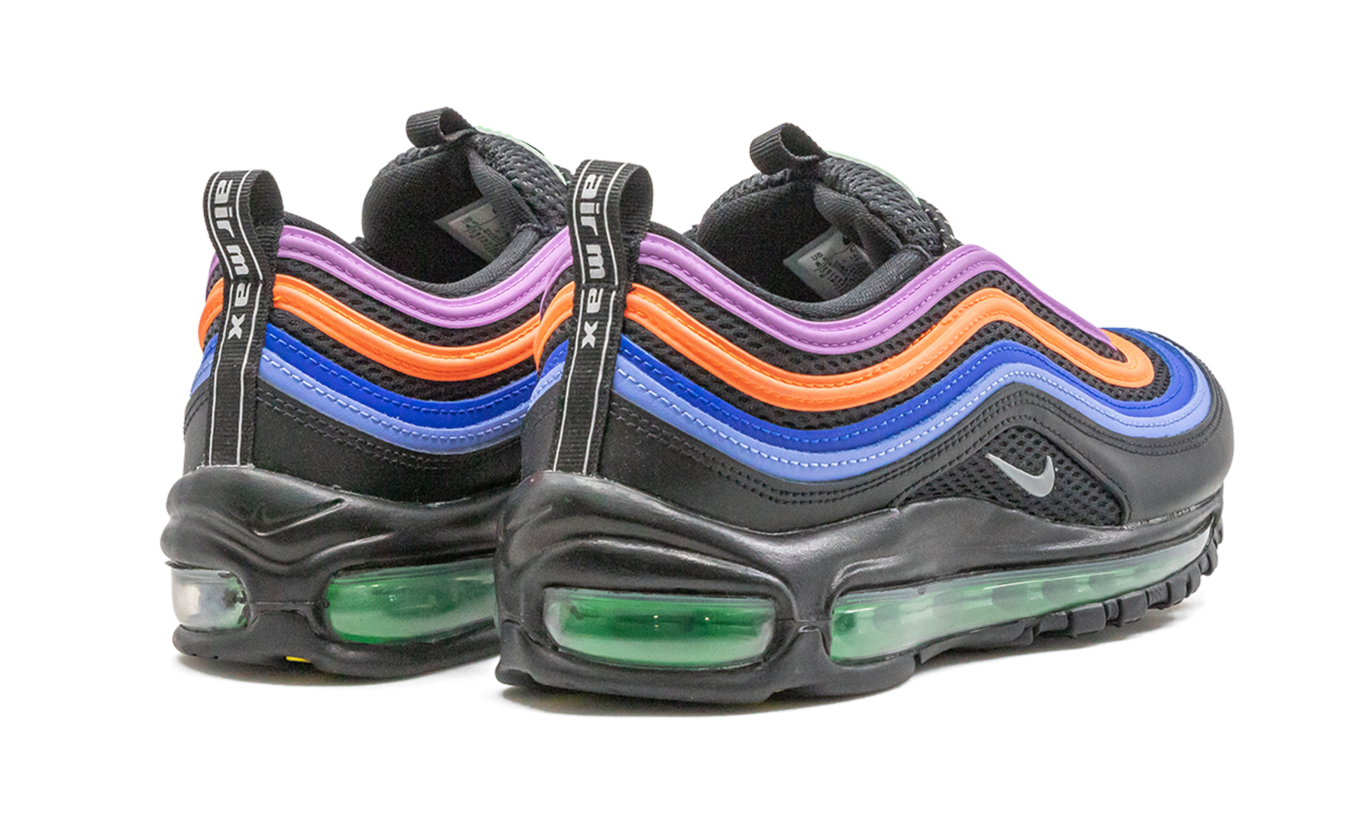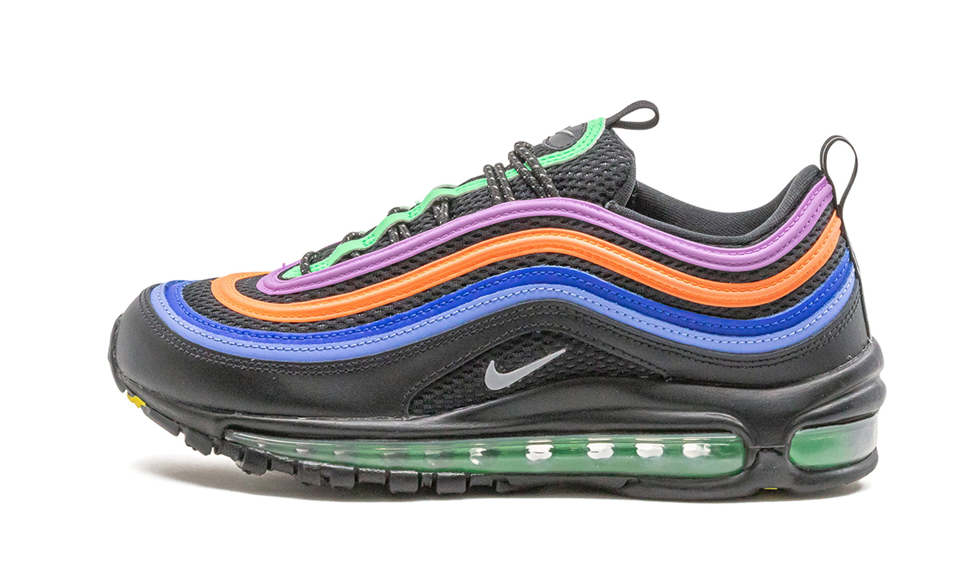 The Women’s Nike Air Max 97 “Multicolor” is a women’s exclusive colorway of the late retro performance and lifestyle shoe. Nike reintroduced the late ‘90s model to the modern sneaker audience for the Air Max 97’s 20-year-anniversary in 2017. The original “Silver Bullet” colorway, along with various collaborations from the likes of Undefeated, Off-White, and more, all greatly contribute to the design’s ensuing rise in popularity. Here, Nike places a rainbow-like assortment of purple, orange, royal blue, and light blue wavy leather panels atop a black mesh base. A small silver Swoosh logo can be found on the middle of the black leather heel-to-toe mudguard. Black speckled rope laces are layered over the black mesh tongue. “Air Max” branding on the pull tab on the heel gives the shoe an infusion of retro appeal. A green-tinted full-length visible Air unit in the midsole completes the look. Multicolor